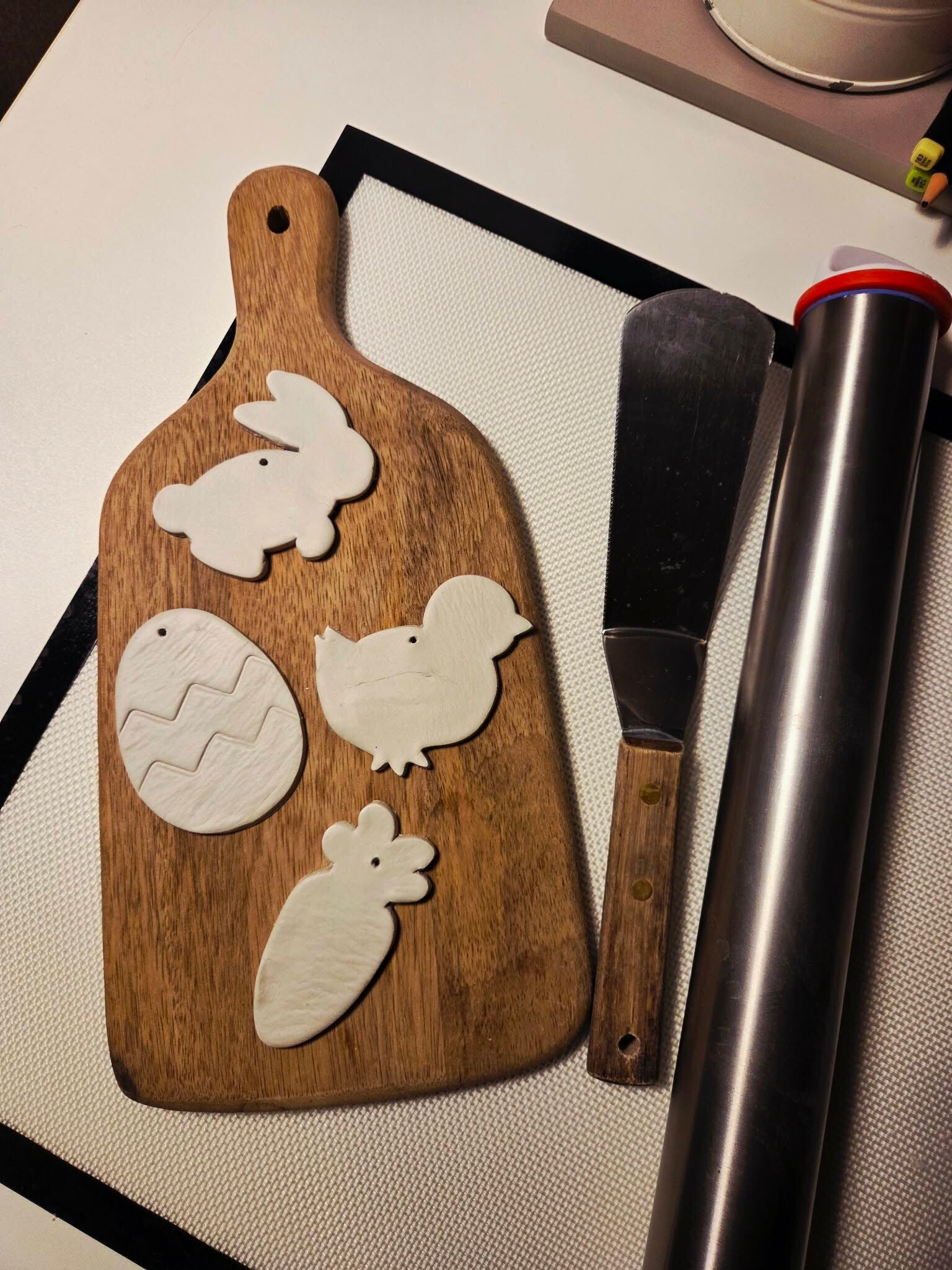 Äldre barn: Forma i lufttorkande lera, måla och lacka för egna dekorationer. Häng i påskriset!